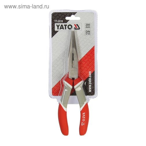 Длинногубцы Yato 200 мм прямые (сталь CrV HRC 56-62 никелированные) двухкомпонентные рукоятки
