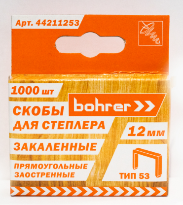 Скобы Bohrer для степлера 12х0,7мм (Тип 53), закаленные (1000 шт.)