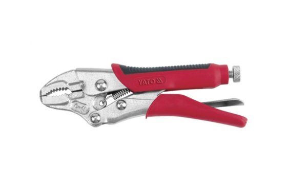 Ручной зажим нескользящая ручка 180мм YATO YT-2152 - удобный инструмент для сжатия нескольких плоских деталей. Конструкция выполнена из хромованадиевой стали. Двухкомпонентные накладки на губках исключают скольжение. Имеется регулировочный винт.