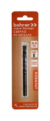 Сверло Bohrer по металлу Эксперт 4,5 мм "кобальт" (сталь HSS-Co5% M35) DIN 338 (2 шт. в блистере)
