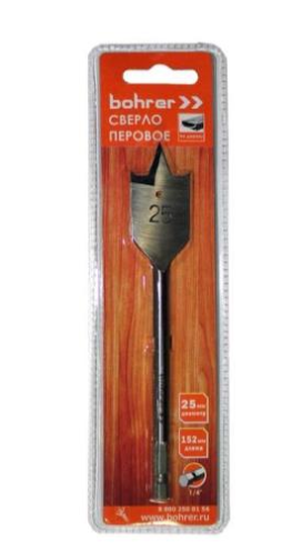 Сверло Bohrer перовое по дереву 28 х 152 мм (в блистере)