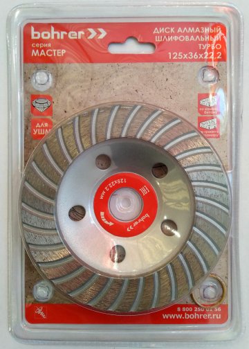 Диск алмазный шлифовальный (чашка) Bohrer Мастер "Турбо" 125х22,2 (36 сегментов)