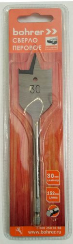 Сверло Bohrer перовое по дереву 30 х 152 мм (в блистере)