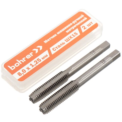 Метчик Bohrer машинно-ручной 8,0х1,25 мм метрический (сталь ШХ15 подшипниковая) (2 шт в уп)