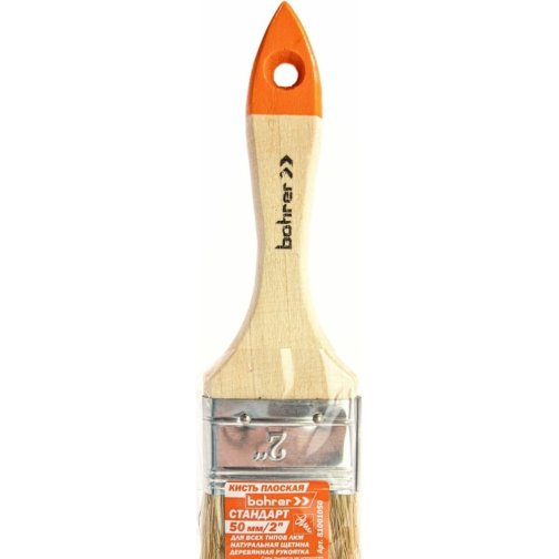 Кисть плоская Bohrer Мастер 50мм/2"(100%натур.щетина 45х12мм)деревян утолщенная рукоятка (480/12)