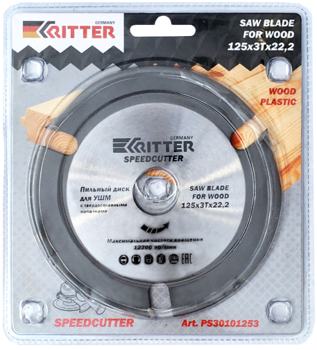 Диск пильный Ritter SpeedCutter 125х22,2 3Т тв.зуба (с твердосплавным напылением: по дереву, пластик