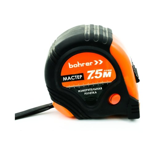Рулетка Bohrer измерительная Мастер 7,5мх25мм, 3 фиксации (с боковым фиксатором), обрезиненный уда