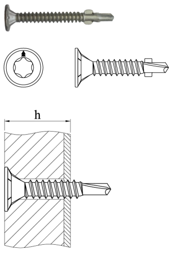 Саморез предназначен для монтажа к металлоконструкциям толщиной до 2 мм: