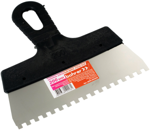 Шпатель зубчатый Bohrer 200 мм 6х6 мм (нержавеющая сталь 0,38 мм, пластмассовая ручка)