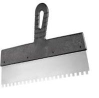 Зубчатый шпатель – это инструмент, используемый для установки плитки. Зубчатые шпатели применяются для разглаживания и расчесывания клея, который помогает крепить плитки к основанию