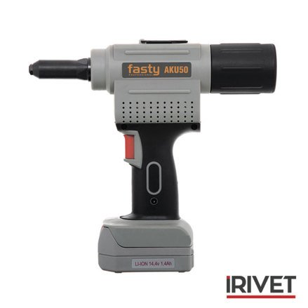 Аккумуляторный инструмент для установки вытяжных заклёпок FASTY AKU 50 - это беспроводной заклёпочник для установки вытяжных заклёпок. Этот инструмент способен развивать тяговое усилие до 10 000 Н, что позволяет работать с заклёпками из оцинкованной и нержавеющей стали диаметром от Ø 2.4 до Ø 5.0 mm*. Инструмент укомплектован аккумуляторной батареей 1,4 Ач. На одном заряде батареи 1,4 Ач, заклёпочник способен устанавливать до 1900 штук заклёпок из алюминия диаметром Ø 2.4 mm или до 400 штук заклёпок из нержавеющей стали диаметром Ø 5.0 mm. С помощью заклёпочника FASTY AKU 50 можно устанавливать заклёпки практически в любом месте - шланги и провода не станут помехой, а встроенный подвес позволит разместить инструмент на монтажном поясе или на балансире при работе на сборочной линии. Удобный индикатор уровня заряда батареи расположен на верхней части корпуса инструмента - прямо перед глазами - низкий заряд батареи не застанет врасплох!
