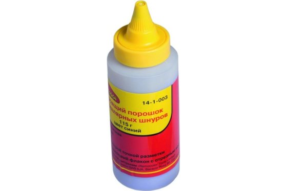 Красящий порошок для малярных шнуров РемоКолор синий, 115 г 14-1-003 упакован в пластмассовый флакон с отрезным носиком.