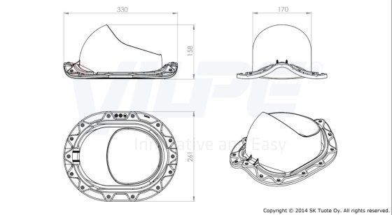 Комплект: MUOTOKATE проходной элемент, кольцо гидрозатвора, инструкция по монтажу кольца гидрозатвора, MUOTOKATE шаблон, герметик на безуксусной основе и набор крепежа.
