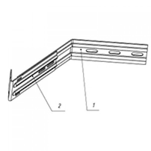 Конструкция углового кронштейна предусматривает основную часть и удлинительную накладку с двумя пазами для перемещения по консоли. Накладка устанавливается на нужную длину и закрепляется к плечу основной части при помощи болтов. С целью повышения несущей способности кронштейн оснащается специальными ребрами жесткости, расположенными по всей длине консоли и плеча.