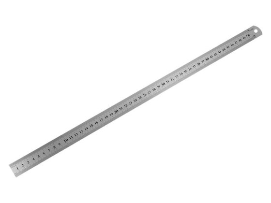 Линейка металлическая нерж. сталь, 2 метрич. шкалы в см (сверху и снизу), отверстие , 500мм, (шт.)