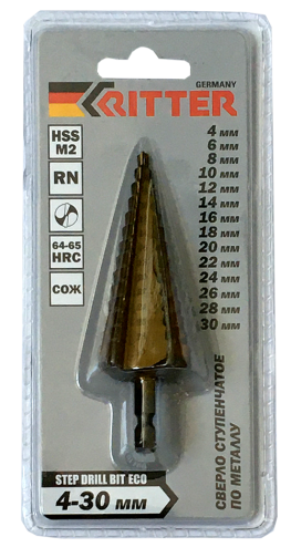 Сверло Ritter ступенчатое по металлу 4-30 мм (4/6/8/10/12/14/16/18/20/22/24/26/28/30) HSS (M2)