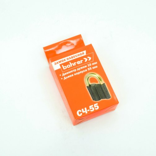 Замок Bohrer навесной СЧ-55 (дужка 10 мм, 3 ключа) (корпус 55 мм) (с подвесом) (72/6/1)