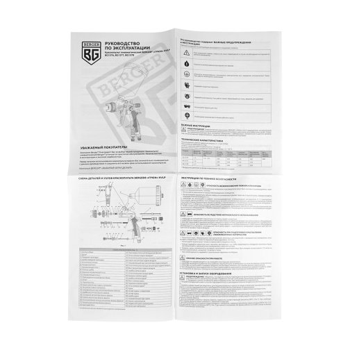 Краскопульт пневматический BERGER «ГРЮН» HVLP 1.7 мм BG1378
