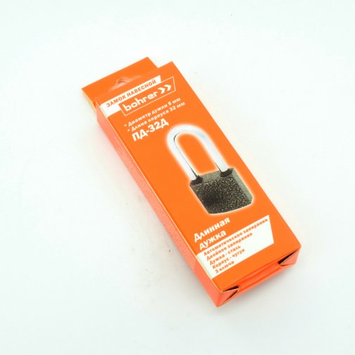 Замок навесной Bohrer ПД-32Д (удлиненная дужка сталь 5 мм, 3 ключа) (корпус чугун, резин. накладки н