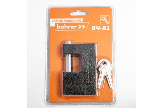 Замок Bohrer навесной ВЧ-81 с прямой дужкой (дужка 12 мм, 3 ключа) (81х18х52мм) (блистер) (36/6/1)
