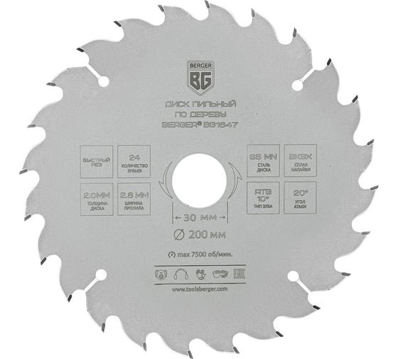 Диск пильный по дереву и ДСП, быстрый рез (200x32/30/25.4/20x24z, 2.8/2.0 мм, ATB 10°, атака 20°) BE
