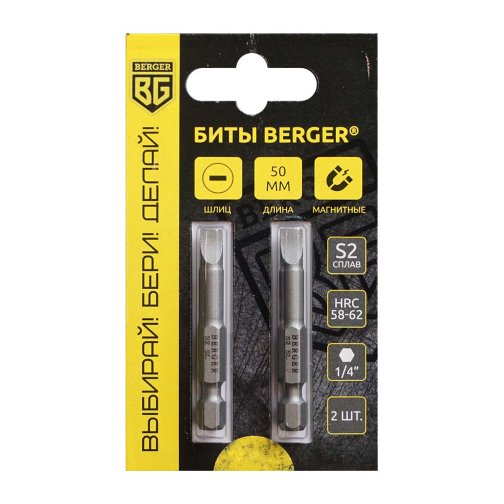 Биты магнитные SL1.0x5.5x50мм, 2 шт., S2 BERGER BG2410