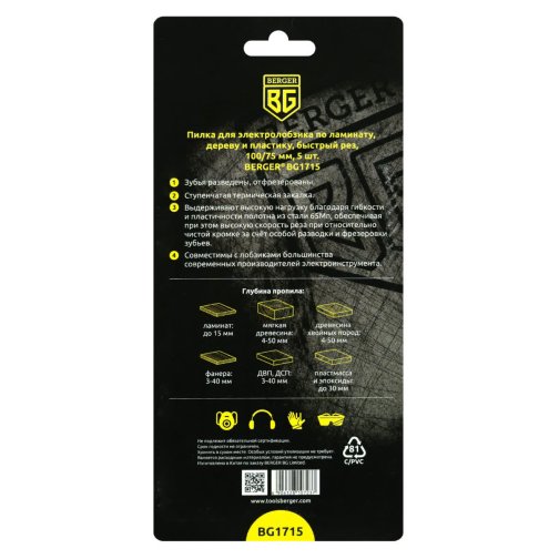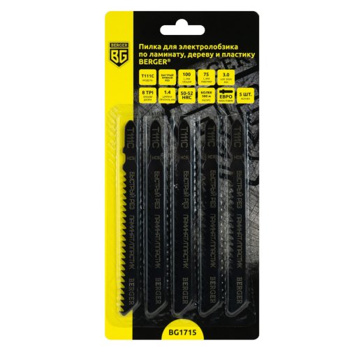 Пилка для электролобзика по ламинату, дереву и пластику T111C, быстрый рез (5 шт, шаг 3.0 мм, длина
