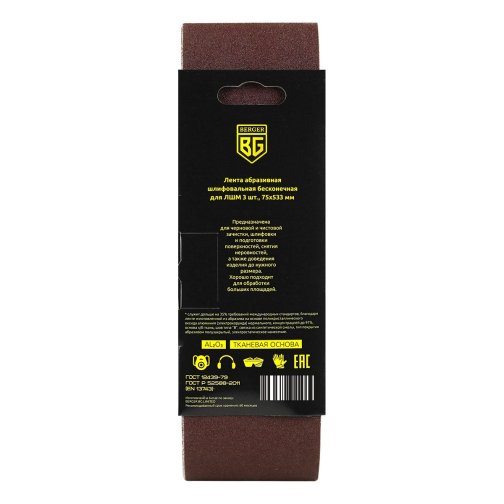 Лента абразивная шлифовальная бесконечная для ЛШМ (3 шт, 75х533 мм, P60) BERGER BG1582