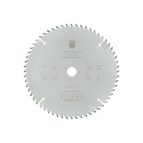 Диск пильный по дереву и ДСП, чистый рез (305x30/25.4/20/16x60z, 3.4/2.4 мм, ATB 12°, атака 14°) BER
