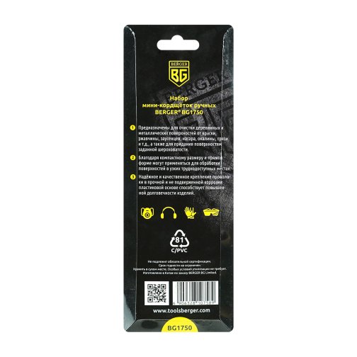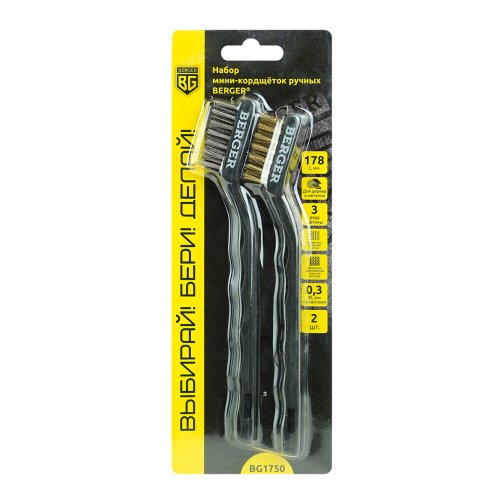 Набор из двух мини-кордщёток ручных (латунь, сталь, 0.3 мм) BERGER BG1751