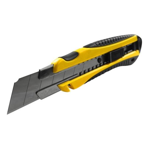 Нож строительный с двухкомпонентной обрезиненной рукояткой и сегментированным лезвием 25мм (3 лезвия