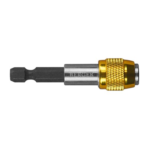 Магнитный адаптер Berger BG BG-MBH используется с дрелями-шуруповертами для работы различными битами. Магнитный держатель обеспечивает надежную и точную фиксацию насадок. Применяется во время монтажных работ где необходимо предохранять мягкие рабочие поверхности от повреждений, например, при работе по гипсокартону. Высокая точность при вращении обеспечивается за счет высокой соосности наконечника и хвостовика. Хвостовик адаптера — Е1/4".