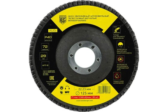 Диск абразивный шлифовальный лепестковый вогнутый (125x22.23 мм, P60) BERGER BG1566