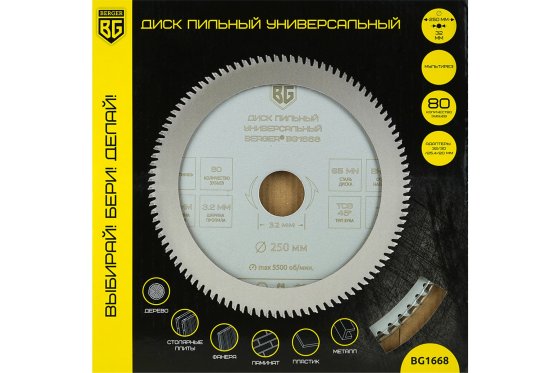 Диск пильный универсальный мультирез (255x30/25.4/20/16x80z, 3.2/2.2 мм, TCG 45°, атака -5°) BERGER