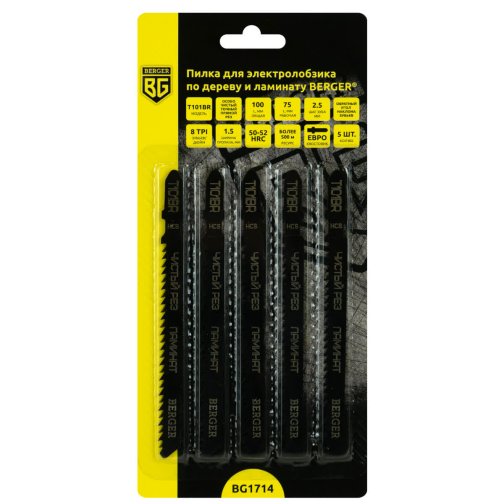 Пилка для электролобзика по дереву и ламинату T101BR, обратный зуб, чистый рез (5 шт, шаг 2.5 мм, дл