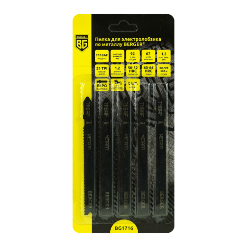 Пилка для электролобзика по металлу T118AF, би-металл, прямой рез (5 шт, шаг 1.2 мм, длина 92/67 мм)