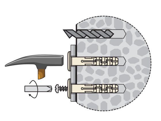 PND 6F - дюбель с широким фланцем для крепления сквозь прикрепляемый материал (толщина прикрепляемого материала не более 10 мм).
