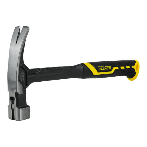 Молоток-гвоздодер цельнокованый 450 г., магнит, 2-компонентная рукоятка, BERGER BG1527