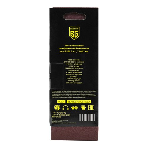 Лента абразивная шлифовальная бесконечная для ЛШМ (3 шт, 75х457 мм, P80) BERGER BG1579