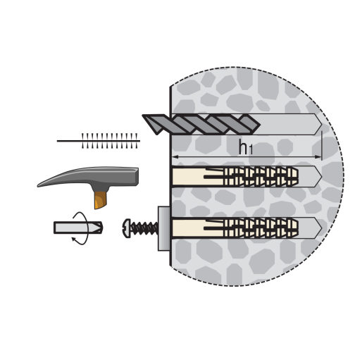 Дюбель рекомендуется использовать с универсальным шурупом.