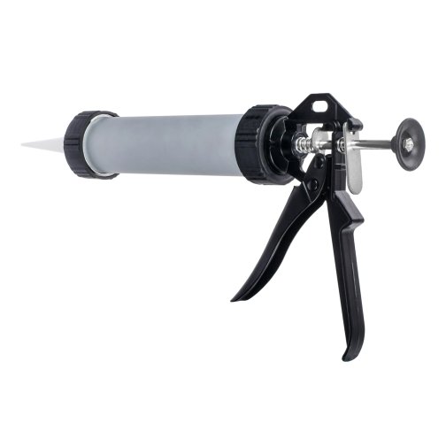 Пистолет для герметика закрытый усиленный. Оснащен алюминиевым цилиндрическим корпусом. Для выдавливания герметика из твердых и мягких картриджей объемом 310 - 400 мл. Рукоятка пистолета имеет возможность поворота на 360°. Стальной круглый шток. В комплект к пистолету входит пластиковая насадка