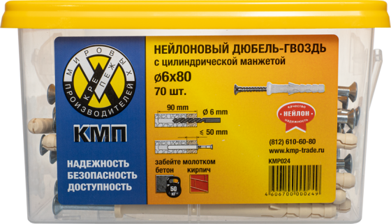 Дюбель-гвоздь КМП с цил.манжетой 6x80 (70шт), , упак