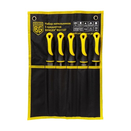Набор напильников 5 предметов рукояткой BERGER BG1147, Насечка №2, Материал (сталь): T12,