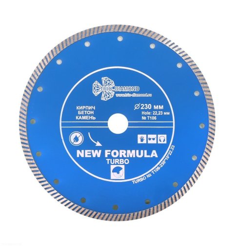 Особенности: диски с рифленой кромкой, имеют более чистый и аккуратный по сравнению с сегментными дисками рез. За счет турбированной кромки увеличивается скорость реза, отверстия на теле диска способствуют лучшему охлаждению и продлевают срок службы. Подходят как для сухого, так и для мокрого реза.