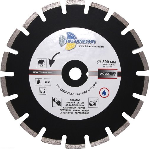 Диск алмазный отрезной 300х25,4х12 Асфальт Серебряная пайка GA772