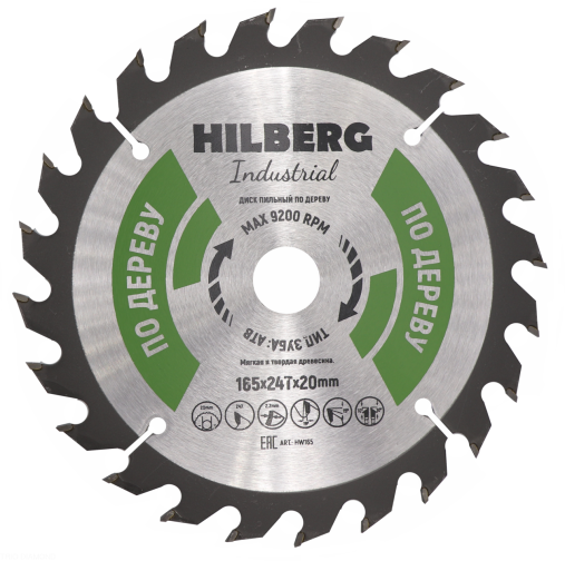 Диск пильный Hilberg Industrial Дерево 165х20х24Т HW165