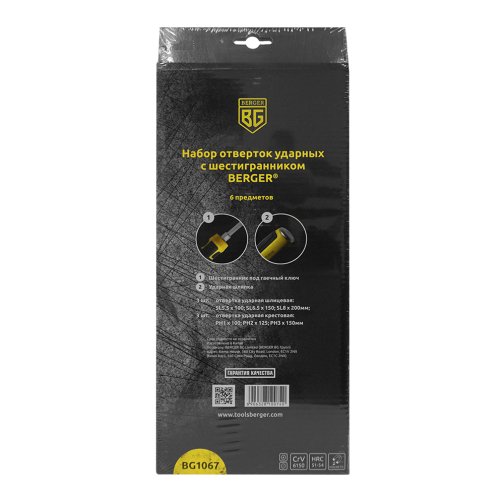 Набор отверток ударных с шестигранником 6 предметов BERGER BG1067
