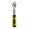 Телескопическая трещотка с возможностью промежуточной фиксации в 3-х положениях длины рукоятки (примерный шаг составляет 25 мм). Благодаря телескопическому удлинителю, трещотка позволяет снизить усилие при работе с крепежом, имеющий высокий момент фиксации. Шестерня с 72 зубцами, позволит использовать трещотку в ограниченном пространстве, так как угол перестановки рукоятки равен 5°