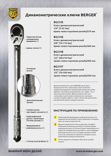 Ключ динамометрический щелчковый BERGER BG 1/2" 28-210 Нм (Правая-Левая резьба)
