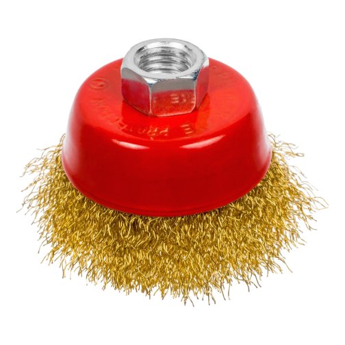 Щетка-крацовка чашечная, латунированная стальная проволока, посадочная гайка М14, 60мм,
